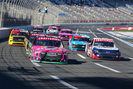 Credit: CONCORD, NORTH CAROLINA – OCTOBER 03: Corey Heim, driver of the #11 Mobil 1 Toyota, leads the field to the green flag to start the NASCAR Craftsman Truck Series EcoSave 250 at Charlotte Motor Speedway on October 03, 2025 in Concord, North Carolina. (Photo by David Jensen/Getty Images)