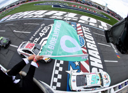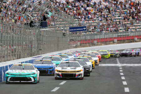 Credit: CONCORD, NORTH CAROLINA – OCTOBER 05: Tyler Reddick, driver of the #45 Jordan Brand Toyota, leads the field to the green flag to start the NASCAR Cup Series Bank of America ROVAL 400 at Charlotte Motor Speedway on October 05, 2025 in Concord, North Carolina. (Photo by David Jensen/Getty Images)