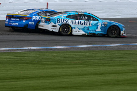 Credit: CONCORD, NORTH CAROLINA – OCTOBER 05: Tyler Reddick, driver of the #45 Jordan Brand Toyota, and Shane Van Gisbergen, driver of the #88 WeatherTech Chevrolet, lead the field to start the NASCAR Cup Series Bank of America ROVAL 400 at Charlotte Motor Speedway on October 05, 2025 in Concord, North Carolina. (Photo by Jordan Bank/Getty Images)