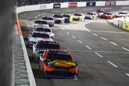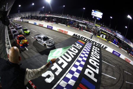 Credit: MARTINSVILLE, VIRGINIA – OCTOBER 25: Harrison Burton, driver of the #25 Dead On Tools Ford, leads the field to the green flag to start the NASCAR Xfinity Series IAA and Ritchie Bros. 250 at Martinsville Speedway on October 25, 2025 in Martinsville, Virginia. (Photo by Jared C. Tilton/Getty Images)