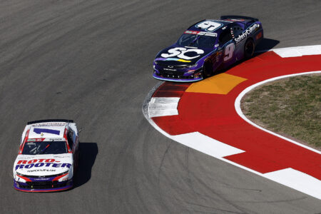 Credit: AUSTIN, TEXAS – FEBRUARY 28: Connor Zilisch, driver of the #1 Roto-Rooter Chevrolet, and Shane Van Gisbergen, driver of the #9 Safety Culture Chevrolet, race during the NASCAR O’Reilly Auto Parts Series Focused Health 250 at Circuit of The Americas on February 28, 2026 in Austin, Texas. (Photo by Logan Riely/Getty Images)